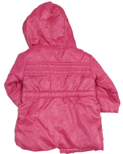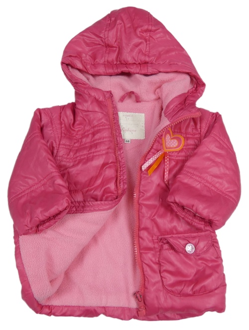 Růžová šusťáková prošívaná zimní bunda se srdíčky a kapucí