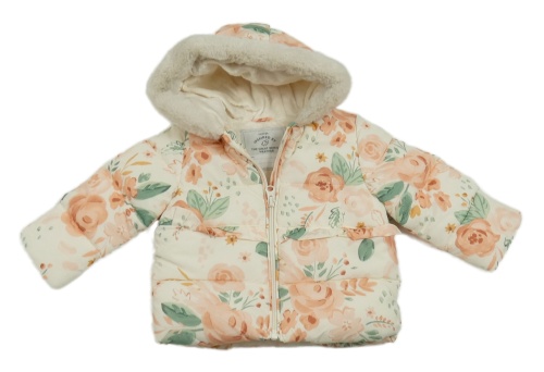 Smetanová květovaná šusťáková zimní bunda s kapucí George