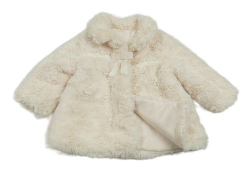 Smetanový kožešinový zateplený kabátek s mašlí a límečkem George