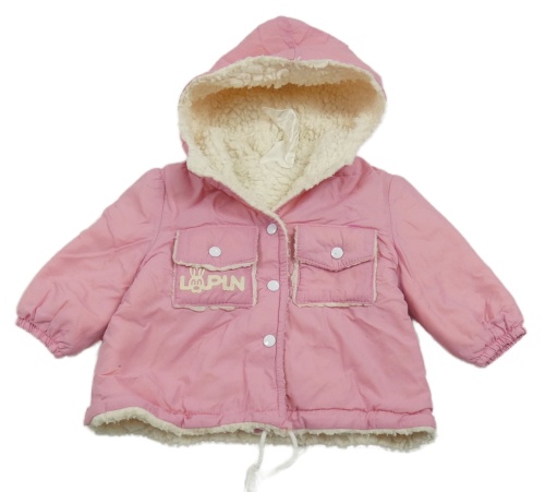 Růžová šusťáková zateplená bunda s potiskem a kapucí