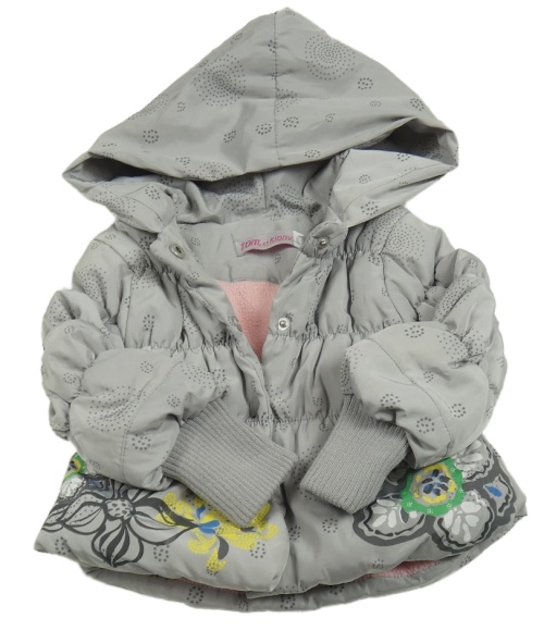 Šedá šusťáková zateplená bunda s květy a kapucí