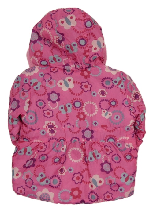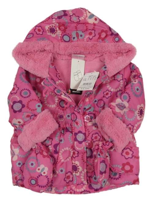 Nové - Růžová květovaná šusťáková zimní bunda s kapucí s kožešinou + rukavice