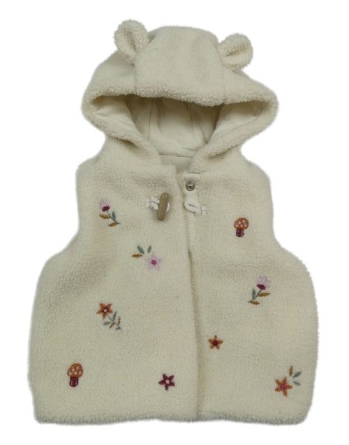 Smetanová huňatá podšitá propínací vesta s kapucí Nutmeg