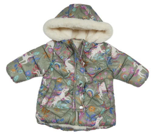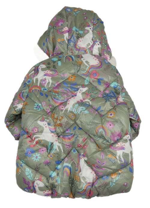 Khaki-barevná šusťáková zimní bunda s jednorožci a kapucí Next