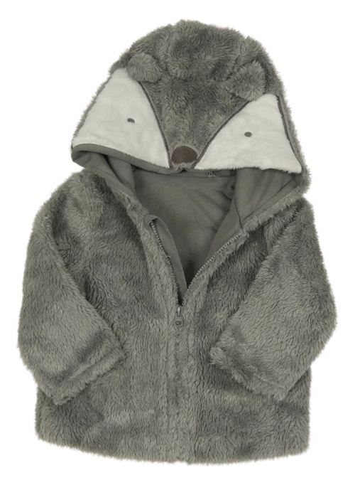 Šedá chlupatá podšitá bunda s kapucí s oušky Mothercare
