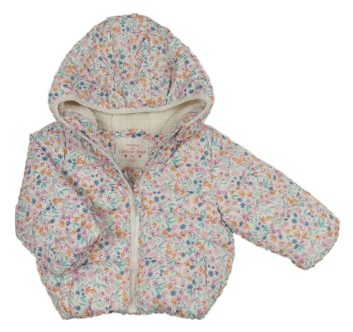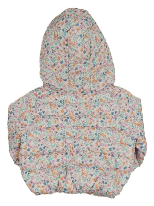 Bílá šusťáková prošívaná zimní bunda s kytičkami a kapucí F&F