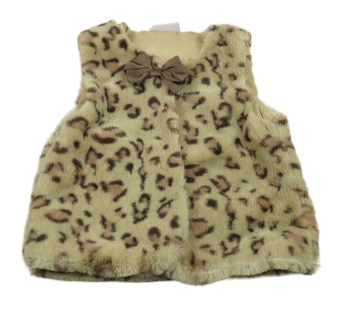 Světlbéžovo-hnědá leopardí kožešinová podšitá vesta s mašlí