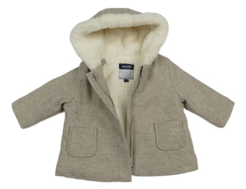 Béžový flaušový zimní kabát s kapucí Kiabi