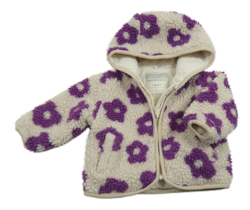Béžová květinová huňatá zateplená bunda s kapucí Tu
