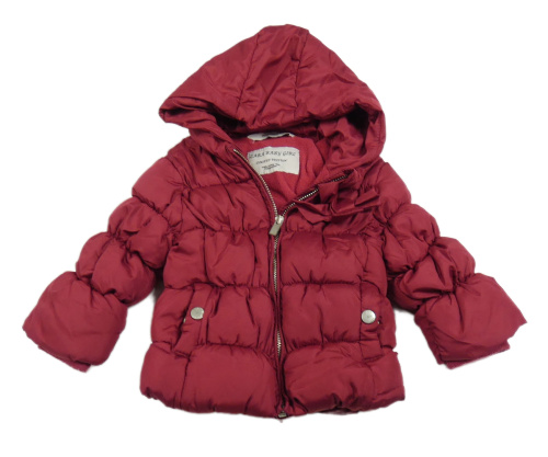 Vínová prošívaná šusťáková zimní bunda s mašlí a kapucí ZARA