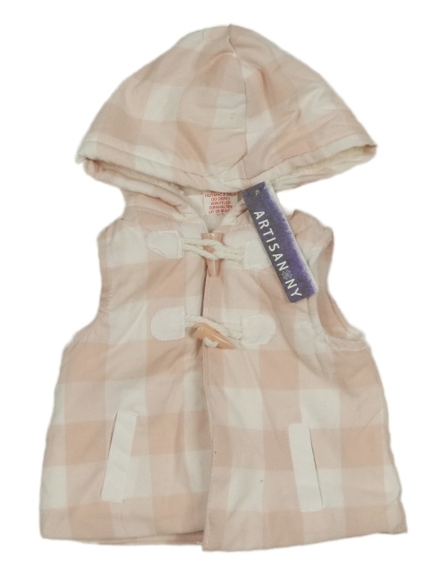 Nové - Světlerůžovo-bílá kostkovaná zateplená vesta s kapucí