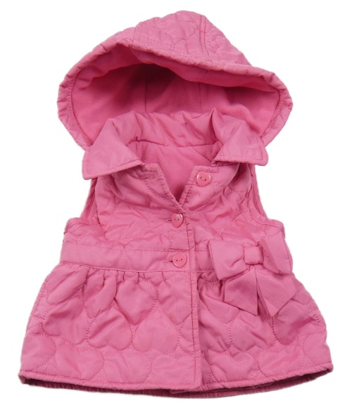 Růžová prošívaná šusťáková podšitá vesta s mašlí a kapucí Matalan
