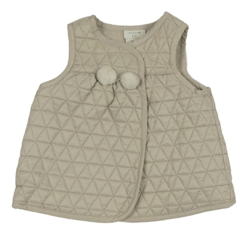 Béžová prošívaná šusťáková zateplená vesta s bambulemi Aspen Kids