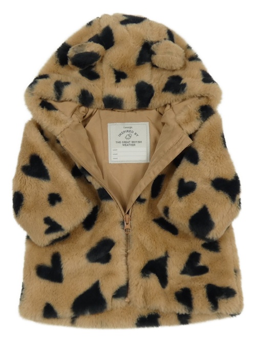 Hnědá kožešinová podšitá bunda se srdíčky a kapucí George