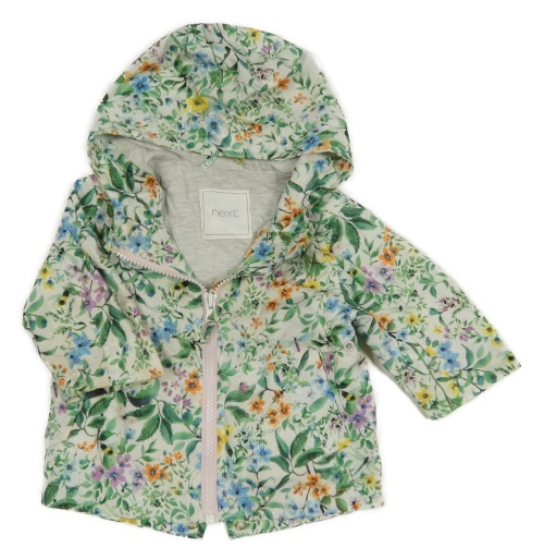 Bílo-zelená květovaná šusťáková jarní bunda s kapucí Next