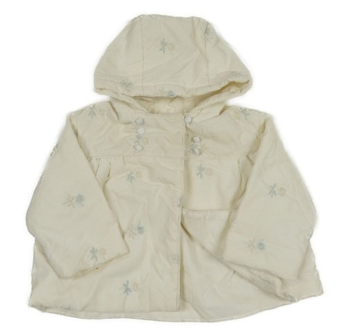 Smetanová šusťáková zateplená bunda s kytičkami a kapucí COURTELLE