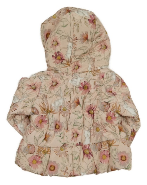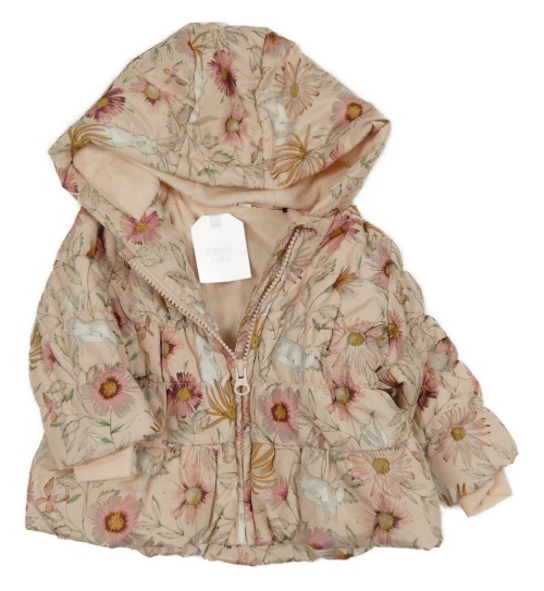 Nové - Růžová květovaná šusťáková zateplená bunda s kapucí Next