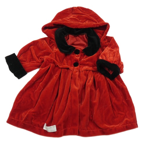 Červený sametový lehký propínací kabátek s kapucí