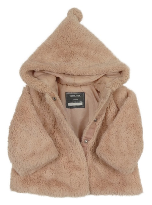 Světlerůžový kožešinový zateplený kabátek s kapucí s bambulí PRIMARK