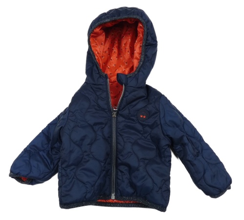 Tmavomodrá šusťáková prošívaná zateplená bunda s nášivkou a kapucí C&A