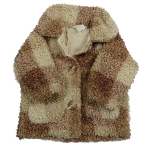 Hnědo-světlehnědo-béžovo-smetanová kostkovaná huňatá podšitá bunda s límečkem H&M