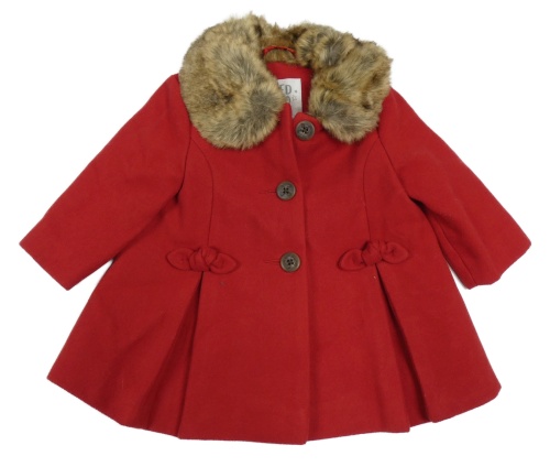 Červený flaušový kabát s kožešinovým límcem F&F