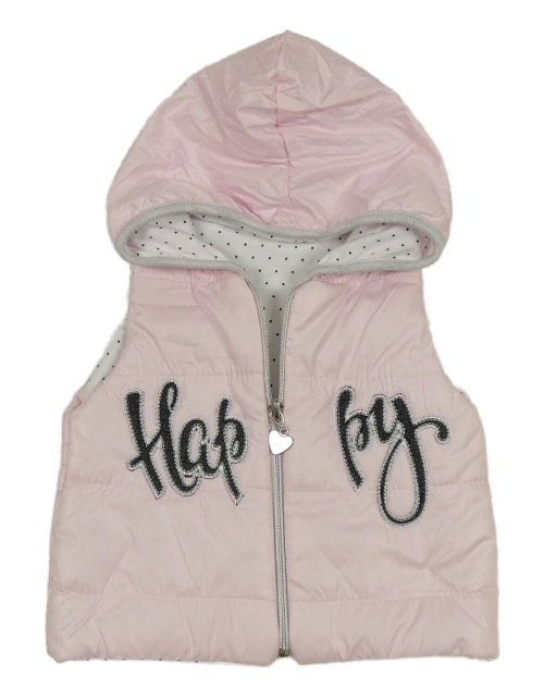 Světlerůžová prošívaná šusťáková zateplená vesta s nápisem a kapucí Hippil