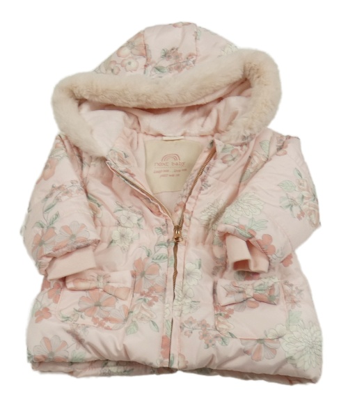 Světlerůžová květovaná šusťáková zimní bunda s kapucí Next