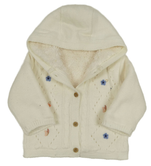 Smetanový propínací zateplený svetr s kytičkami a kapucí Nutmeg
