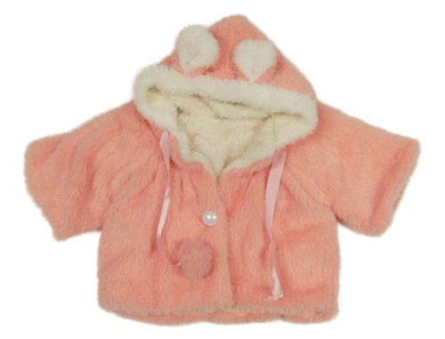 Růžová kožešinová zateplená bunda s kapucí a bambulemi