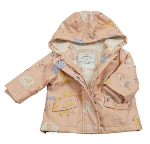 Broskvová nepromokavá zateplená bunda se zvířátky a kapucí George