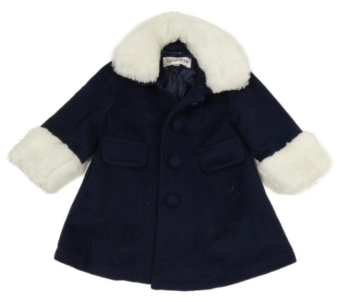 Tmavomodrý flaušový podšitý kabát s kožešinovými lemy
