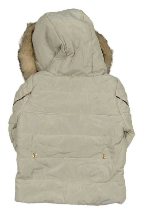 Světlebéžová šusťáková zateplená bunda s kapucí s kožešinou River Island