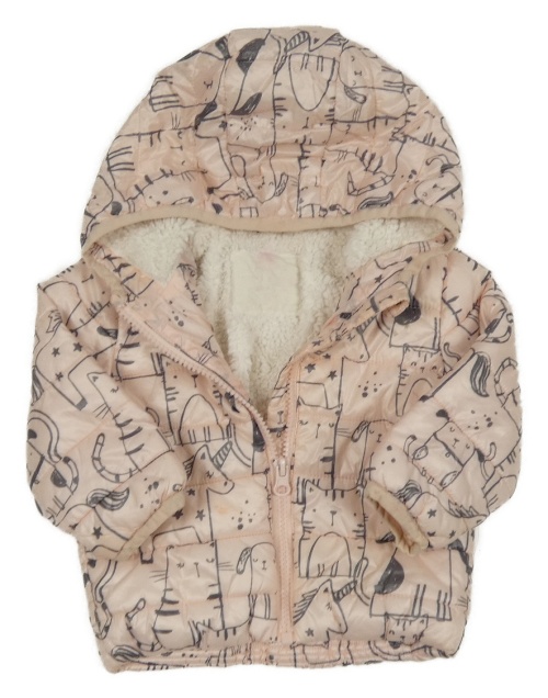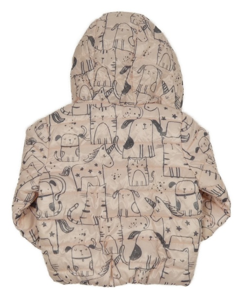 Světlerůžovo-šedá šusťáková zateplená bunda se zvířátky a kapucí F&F