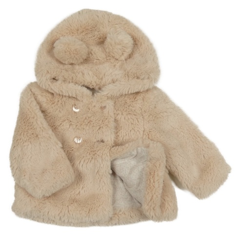 Světlepudrový kožešinový podšitý kabátek s kapucí s oušky F&F