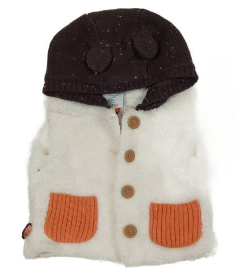 Nové - bílá huňatá podšitá vesta s kapucí s oušky boboli