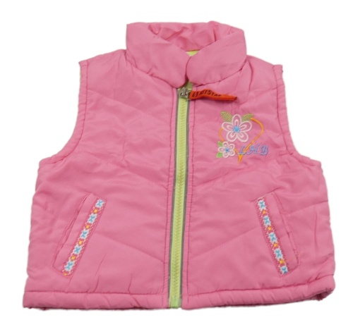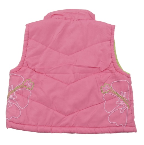Růžová šusťáková zateplená vesta s kytičkami