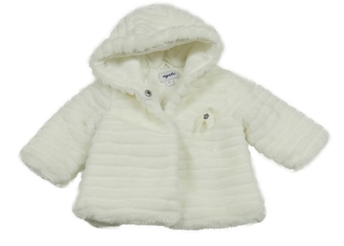 Smetanový kožešinový žebrovaný podšitý kabátek s mašlí a kapucí