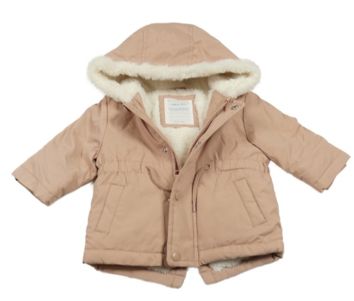 Pudrová šusťáková přechodová parka s kapucí s kožešinou PRIMARK