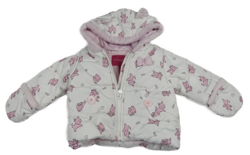 Bílo-růžová šusťáková zateplená bunda s pejsky a kapucí