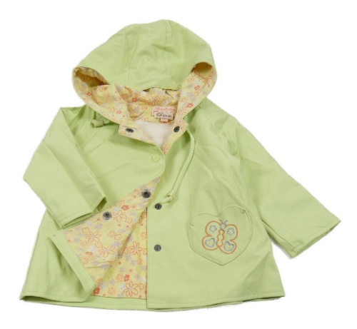 Světlezelená voděodolná jarní bunda s motýlkem a kapucí