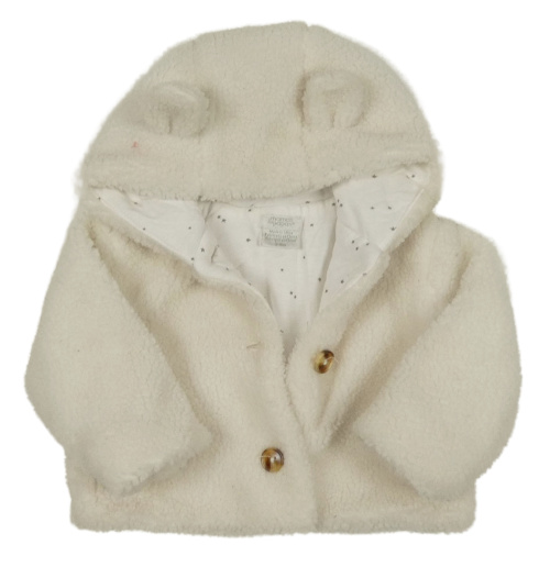 Smetanová huňatá zateplená bunda s kapucí s oušky mamas&papas