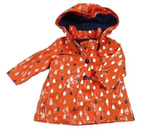 Červená nepromokavá jarní bunda s kapkami a kapucí