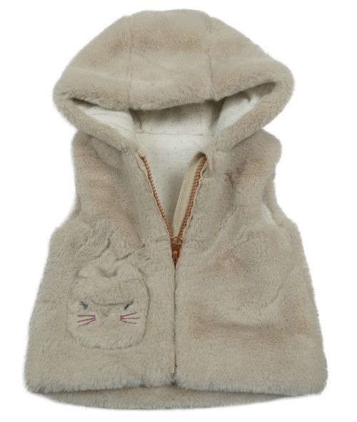 Béžová kožešinová zateplená vesta s kapucí Nutmeg