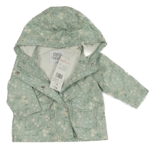 Nové - olivová šusťáková jarní bunda s kytičkami a kapucí F&F