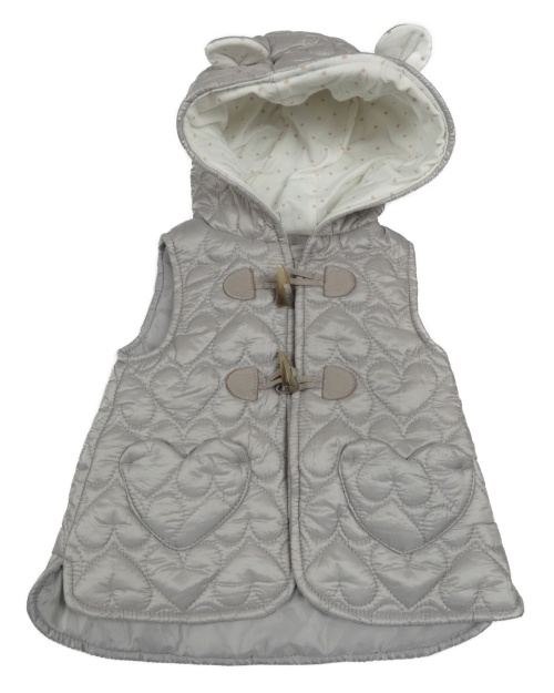 Šedá šusťáková zateplená vesta s prošívanými srdíčky a kapucí s oušky TAHARI