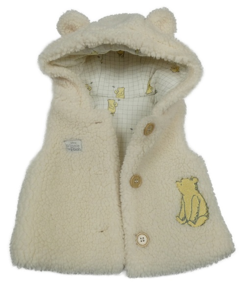 Smetanová huňatá zateplená vesta s medvídkem Pů a kapucí Tu