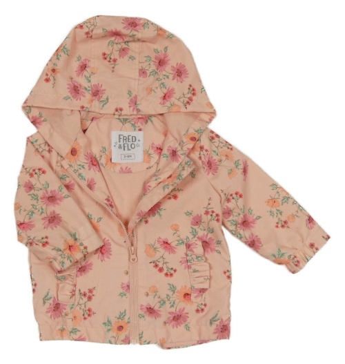 Broskvová šusťáková jarní bunda s kytičkami a kapucí F&F