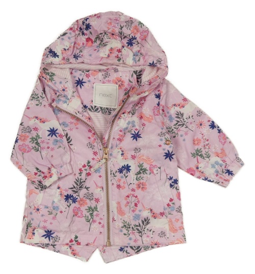 Světlerůžová šusťáková jarní parka s jednorožci a kytičkami a kapucí Next