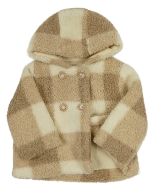 Béžovo-bílá kostkovaná huňatá zateplená bunda s kapucí Nutmeg